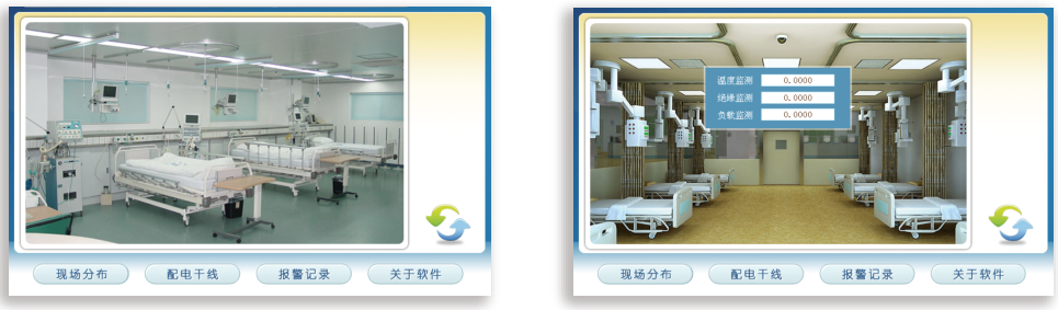 一次圖和現(xiàn)場(chǎng)分布顯示 系統(tǒng)具有一次圖及現(xiàn)場(chǎng)分布圖顯示功能,能直觀的了解并及時(shí)地發(fā)現(xiàn)IT供電系統(tǒng)的報(bào)警地點(diǎn)或區(qū)域,從而方便專業(yè)人員及時(shí)到達(dá)現(xiàn)場(chǎng)進(jìn)行故障排查; 實(shí)時(shí)數(shù)據(jù)采集與顯示 利用安裝于各IT配電系統(tǒng)中絕緣監(jiān)測(cè)儀表和絕緣故障定位儀表,采集各隔離電源系統(tǒng)的參數(shù)。采集到的數(shù)據(jù)實(shí)時(shí)顯示在監(jiān)控系統(tǒng)界面,這些監(jiān)測(cè)參量含IT系統(tǒng)對(duì)地絕緣電阻、變壓器負(fù)荷電流、變壓器繞組溫度及絕緣故障回路等;
