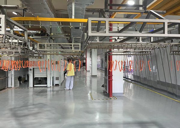 銅牌浸塑流水線-汽車電池銅鋁浸塑生產線-母排浸涂生產線-絕緣浸涂線 銅牌絕緣浸塑線描述 銅牌絕緣浸塑線是一套專為銅排(銅牌)表面制備絕緣保護層的自動化生產線,通過將銅排浸入特制絕緣浸塑材料中,經預處理、浸涂、固化等工序,在銅排表面形成均勻、致密且絕緣性能優異的保護層,廣泛應用于電力、新能源、軌道交通等領域,為銅排提供絕緣、防腐蝕、防磨損保護,保障電氣設備安全穩定運行。 一、工藝原理 銅牌絕緣浸塑線主要依靠兩種核心工藝原理實現絕緣層制備,分別適配不同性能需求與生產場景: (一)熱浸塑原理 先將待處理的銅牌放入預熱爐中,加熱至特定溫度(通常為 320℃-370℃),使銅牌表面具備足夠的熱吸附能力;隨后,將預熱后的銅牌快速浸入處于熔融狀態的絕緣浸塑材料(如 PVC 浸塑液)中,浸塑材料接觸高溫銅牌表面后,迅速吸附并初步熔融;之后,將浸塑后的銅牌送入固化爐,在 200℃-350℃的溫度下進一步加熱固化,使浸塑材料充分流平、交聯,形成與銅牌基體結合緊密的絕緣層。該原理制備的絕緣層厚度較厚(一般為 0.5mm-2mm),絕緣性能與機械強度突出,適用于對絕緣等級要求較高的高壓電氣設備中的銅排。 (二)冷浸塑原理 無需對銅牌進行預熱處理,在常溫環境下,將經過前處理的銅牌直接浸入常溫狀態的絕緣浸塑液中。浸塑液中的高分子聚合物成分通過物理吸附與化學作用,逐漸附著在銅牌表面;浸泡一定時間(根據絕緣層厚度需求,通常為 5min-30min)后,將銅牌從浸塑液中取出,自然晾干或送入低溫烘干室(溫度一般為 60℃-80℃)進行干燥固化,使浸塑液中的溶劑揮發,聚合物形成穩定的絕緣層。冷浸塑工藝操作簡便、能耗低,適合對絕緣層厚度要求較薄(通常為 0.1mm-0.5mm)且生產節奏較快的中低壓電氣銅排處理場景。 二、工藝流程 銅牌絕緣浸塑線的生產流程需經過多道精密工序,每一步都直接影響絕緣層的質量,具體流程如下: (一)銅牌前處理 作為保障絕緣層附著力的關鍵環節,前處理包含三個核心步驟: 脫脂除油:將銅牌放入脫脂槽中,采用堿性脫脂劑(如氫氧化鈉、碳酸鈉混合溶液)或溶劑型脫脂劑(如三氯乙烯)進行浸泡或噴淋處理,去除銅牌表面在加工過程中殘留的切削油、沖壓油、防銹油等油污。處理時間根據油污嚴重程度而定,一般為 10min-20min,確保油污徹底清除,避免后續浸塑時出現絕緣層起泡、脫落等問題。 除銹清潔:對于長期存放或在潮濕環境中處理的銅牌,表面可能產生氧化銹跡,需進行除銹處理。通常采用酸洗除銹(如鹽酸、硫酸稀釋溶液),浸泡時間為 5min-15min,去除表面氧化皮與銹跡;之后,用清水對銅牌進行多次沖洗,清除表面殘留的酸液,防止酸液腐蝕銅牌基體。 干燥處理:將清洗后的銅牌送入熱風干燥爐,在 80℃-120℃的溫度下烘干,烘干時間為 15min-30min,確保銅牌表面完全干燥,無水分殘留,避免水分影響浸塑材料的吸附與固化效果。