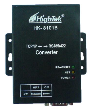 1口 RS485/422-以太網、TCP/IP協議、可上機架,10M Hightek 8101B是一個RS485/422與TCP/IP的協議轉換器,它提供RS485/422到網絡和網絡到RS485/422的數據透明傳輸,它將從RS485/422總線上收到的數據,透明的傳送到在網絡上的目標服務器,目標服務器發出的數據經網絡通過它透明的發送到RS485/422總線上。 Hightek 8101B向上提供10M以太網接口,向下提供1個標準RS485/422口(RS485,RS422可選擇),內部集成ARP,IP,ICMP,TCP,UDP,SOCK5,http等協議,支持動態IP和靜態IP,支持網關和代理服務器。 Hightek 8101B有三種工作模式: 1. 作為TCP服務器,轉換器在指定的TCP端口上監聽平臺程序的連接請求;2. 作為TCP客戶端,轉換器上電時主動向平臺程序請求連接。 3. 自動方式,轉換器一般工作在TCP服務器模式,當轉換器收到串口數據時自動切換到TCP客戶端模式,轉換器向平臺程序請求連接,并將數據傳送到平臺,傳送完后轉換器自動切換回TCP服務器模式。 應用程序可以通過三種方式和轉換器進行通訊和收發數據:1.Socket(套接字);2.ActiveX控件;3.虛擬串口。使用虛擬串口時,控制器的串口參數可以實現與虛擬串口的參數的實時同步。 技術特點:支持多模塊映射到一個串口。 典型應用 門禁系統、考勤系統、售飯系統、POS消費系統、遠程數據采集系統、樓宇自控系統和其它一些集中控制系統。