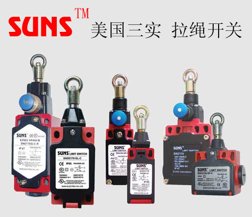 SUNS三實 —— 隨時為您服務,為您量身定做最佳解決方案。 緊急停止裝置是用來保護人身和設備安全的,它的選擇取決于需要安全保護功能的機器的尺寸以及機器使用的環境,操作人員必須能夠在工作區域內的任何一點觸發機器的停止指令。三實拉繩開關 (拉線開關)是實現這一安全功能的理想產品。UL認證號:E216958。 在安裝時使用終端彈簧可以確保在任何方向拉動拉繩都可以觸發停止裝置。當使用滑輪時,拉繩可以折成一定的角度從而環繞整個機器。 急停指令可保持鎖定,手動復位拉繩開關 (拉線開關)在觸發位置具有機械鎖定裝置,可以在開關的頭部進行手動復位。 SUNS 三實拉繩開關(拉線開關)選型指南: 1. 拉線長度:機器的尺寸 2. 外殼材料:塑料外殼(防護等級IP65),金屬外殼(防護等級IP67) 3. 功能:自動復位,手動復位 4. 觸點形式:1NO/1NC, 2NC, 1NO/2NC 只要您提供以上信息,我們就能為您提供合適的產品。 自動復位塑料外殼拉繩開關: SND2170SLC SND4170SLC SND6170SLC 自動復位金屬外殼拉繩開關: SN2170SLC SN4170SLC SN6170SLC 手動復位塑料外殼拉繩開關: SND2170SLC-R SND4170SLLC-R SND6170SLC-R 手動復位金屬外殼拉繩開關: SN2170SLC-R SN4170SLC-R SN6170SLC-R 上海三實電器有限公司——專業限位開關(行程開關)、拉繩開關(拉線開關)、安全開關(安全門開關)、微動開關、腳踏開關、接近開關、電鈴、蜂鳴器供應商。如有特殊需求,我們將很高興為您訂制個性化解決方案。現貨供應,美商獨資,認證全,品質好,國內生產,價格低,貨期快,服務好!