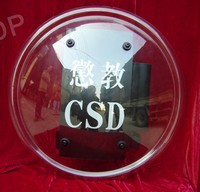 防暴盾牌 ◆輕重量設(shè)計(jì) ◆高蜜度泡沫襯墊,靈巧的橡膠手柄 ◆靈巧的臂板,配有可以調(diào)節(jié)的維可牢尼龍搭鏈帶 ◆曲面形狀,3mm厚抗破碎聚碳酸酯 ◆2色標(biāo)示牌,字型可以選擇