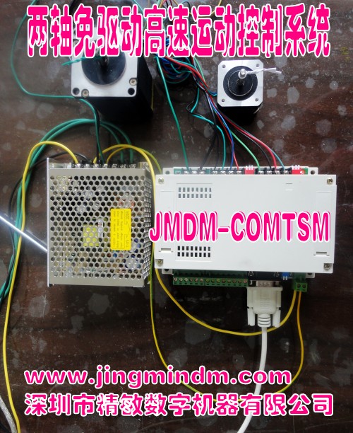 一、功能描述 JMDM-COMTSM是深圳市精敏數(shù)字機(jī)器有限公司自主研發(fā)的一款工業(yè)級高性能可編程、可監(jiān)控、免驅(qū)動的2軸步進(jìn)電機(jī)運(yùn)動控制器。該控制器有8路高速數(shù)字量信號輸入,3路數(shù)字量信號輸出、2路脈沖輸出控制2路步進(jìn)電機(jī),無需步進(jìn)電機(jī)驅(qū)動器,可直接驅(qū)動57以下的步進(jìn)電機(jī),每相最大電流為2A;有1路串口通信接口可與JMDM系列其它功能的控制板組合使用構(gòu)成大的控制系統(tǒng),也可與電腦、觸摸屏聯(lián)網(wǎng)實(shí)現(xiàn)上位機(jī)遠(yuǎn)程控制;用單片機(jī)的C語言編程(keil C),有斷電數(shù)據(jù)記憶和串口通信功能,具有防雷擊、抗強(qiáng)電磁干擾、穩(wěn)定可靠、性價(jià)比高、使用簡便的特點(diǎn)。可靈活應(yīng)用在各種工業(yè)自動控制場合,如冶金、化工、塑料、印刷、輕紡、食品、包裝等行業(yè)中的生產(chǎn)機(jī)械、工業(yè)流水線、各種機(jī)床的工業(yè)控制設(shè)備中。 本控制器的工作方式有2種:根據(jù)單片機(jī)程序獨(dú)立控制、上位機(jī)串口監(jiān)控。采用智能S形加減速曲線控制,使電機(jī)控制更加平滑穩(wěn)定。精敏上位機(jī)在線控制界面提供了一般應(yīng)用場合常用的運(yùn)轉(zhuǎn)參數(shù)設(shè)置項(xiàng)(如步進(jìn)電機(jī)運(yùn)轉(zhuǎn)脈沖數(shù)、運(yùn)轉(zhuǎn)速度、送完輸出延時(shí)、起步速度設(shè)定、運(yùn)行方向、手動速度設(shè)定等),方便客戶直接使用。客戶無需懂任何專業(yè)的編程語言,僅通過電腦在線設(shè)置步進(jìn)電機(jī)運(yùn)轉(zhuǎn)參數(shù),即可實(shí)現(xiàn)電腦串口控制2臺步進(jìn)(或伺服)電機(jī)運(yùn)行;并可同時(shí)控制8路數(shù)字量輸入3路數(shù)字量輸出,同時(shí)可提供上位機(jī)串口控制的VB范例程序和通信協(xié)議,方便使用者在此基礎(chǔ)上進(jìn)行二次開發(fā)。