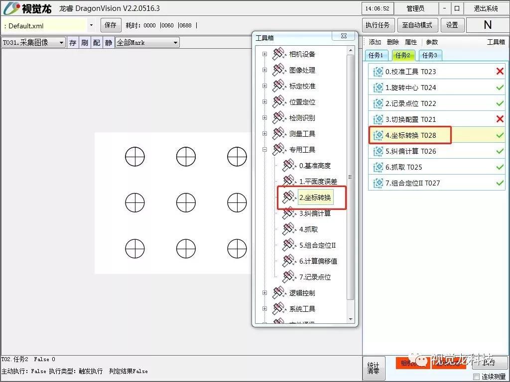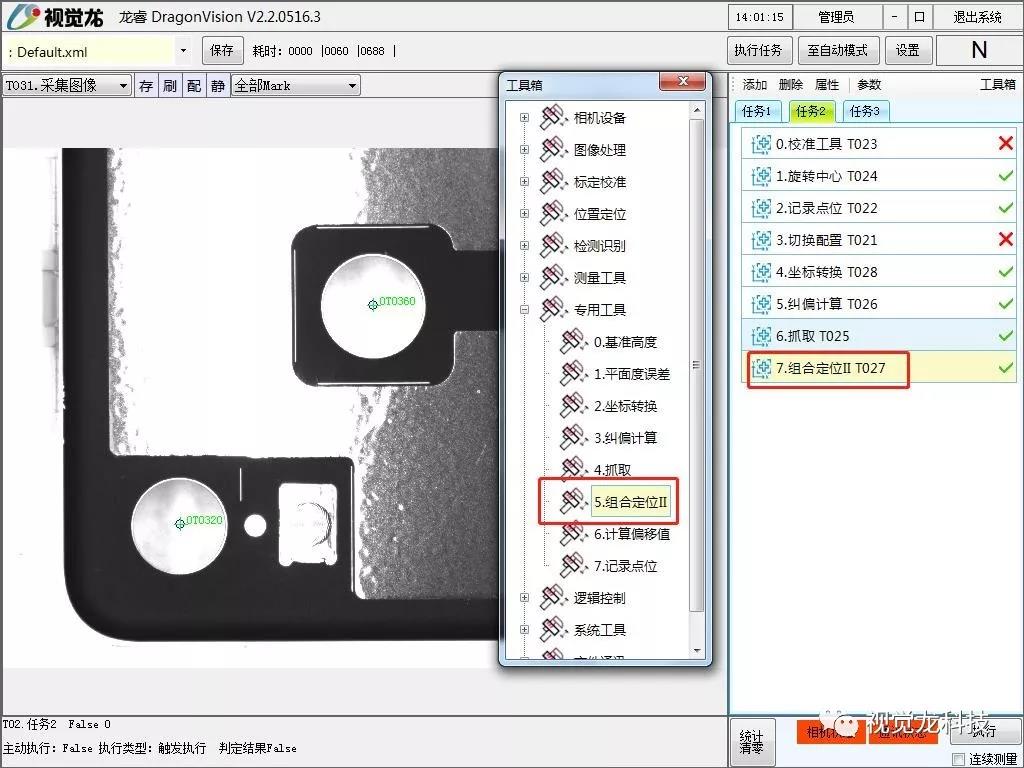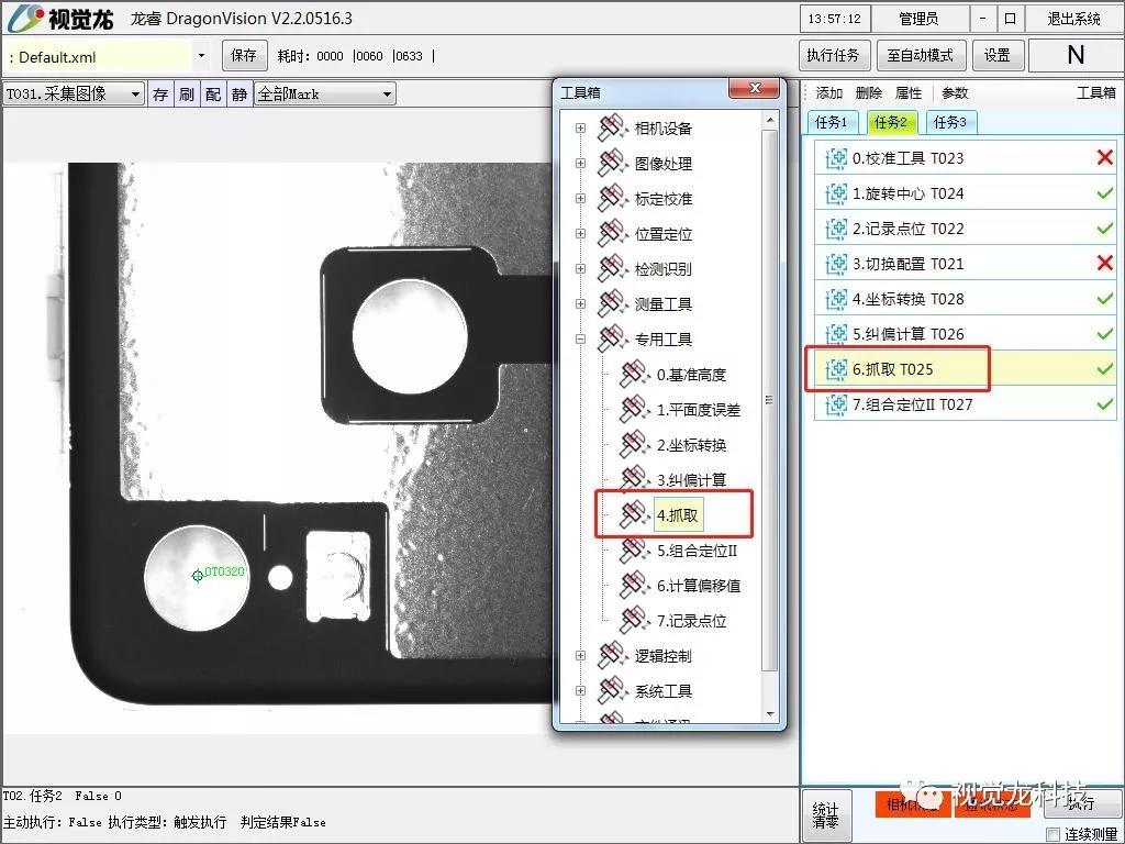 “龍睿DragonVision智能相機”專用型新增自動標定功能、坐標轉換工具、糾偏計算工具、抓取工具、組合定位工具、記錄點位工具、切換配置工具等。可以用于貼輔料、背光板膜片貼合、液晶屏組裝、IC芯片貼合等。