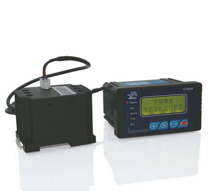 GT505K系列電機智能監控裝置主要功能特征及創新點: ■ 輔助電源支持DC 110/220V或AC220V。 ■ 硬件體系采用分布式結構設計,模塊化、標準化程度高,安裝方便,易于組網,便于現場維護。 ■ 所有接線全部采用即插即拔的插頭聯接方式,使用具有高可靠性的插件,徹底消除接觸不良的隱患。 ■ 采用背插式結構,強弱電完全分開,可大大減少外部電磁干擾在弱電側的耦合,增強裝置的抗干擾能力,提高其可靠性和安全性。 ■ 配置有過載、欠功率、堵轉、阻塞、電流不平衡、斷相、接地、漏電、欠壓、過壓、接觸器分斷能力、速斷、短路等保護功能。 ■ 標配有遙信起動(保護器自身起動)、直接起動(機旁按鈕盒全壓起動)、正反起動降壓起動(星三角、自耦變壓器、頻敏變阻器起動)等多種起動方式,而且起動方式可現場設定。 ■ 標配測量參數信息、故障記錄、運行管理信息、方便查詢故障原因,進行電機維護。 ■ 標配來電自起動功能,以及抗晃電功能、失壓重起動、分批重起動功能。 ■ 標配接地保護功能,可通過附加增選零序電流測量的漏電保護功能。 ■ 高清晰度LCD液晶屏及漢字顯示,簡單易用的中文菜單技術,收集的各類信息隨時顯示,特別適用于現場調試和維護。 ■ 采用工業級微處理器,構成的高性能成套保護測控裝置,具備保護、測量、控制和報警功能。 ■ DI/D0開關量輸入輸出可自由選定已編程功能。 ■ DI支持干接點輸入,由裝置自身供給DC24V電源作保證,而不要需要外界輔助電源。 ■ 配有1路標準的4-20mA電流變送輸出。 ■ 標準RS-485通訊接口,ModbusRTU通訊規約。 ■ 提升版具有熱積累記憶及熱釋放記憶功能,填補了電動機保護器具有熱積累記憶及熱釋放記憶功能的空白。