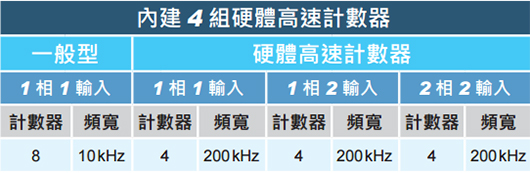 ▲ 支持4組200kHz硬件高速計數(shù)器